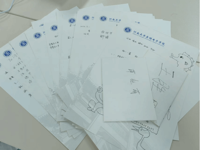 定制信封。同学们认真书写下对大学生活的期待、对专业学习的规划、希望养成的习惯、甚至是对三年后自己的好奇与提问。一笔一划,写下的不仅是文字,更是对自我成长的庄重承诺。这些信件承载着他们对大学生活的美好憧憬、个人成长的规划以及对未来的无限遐想。