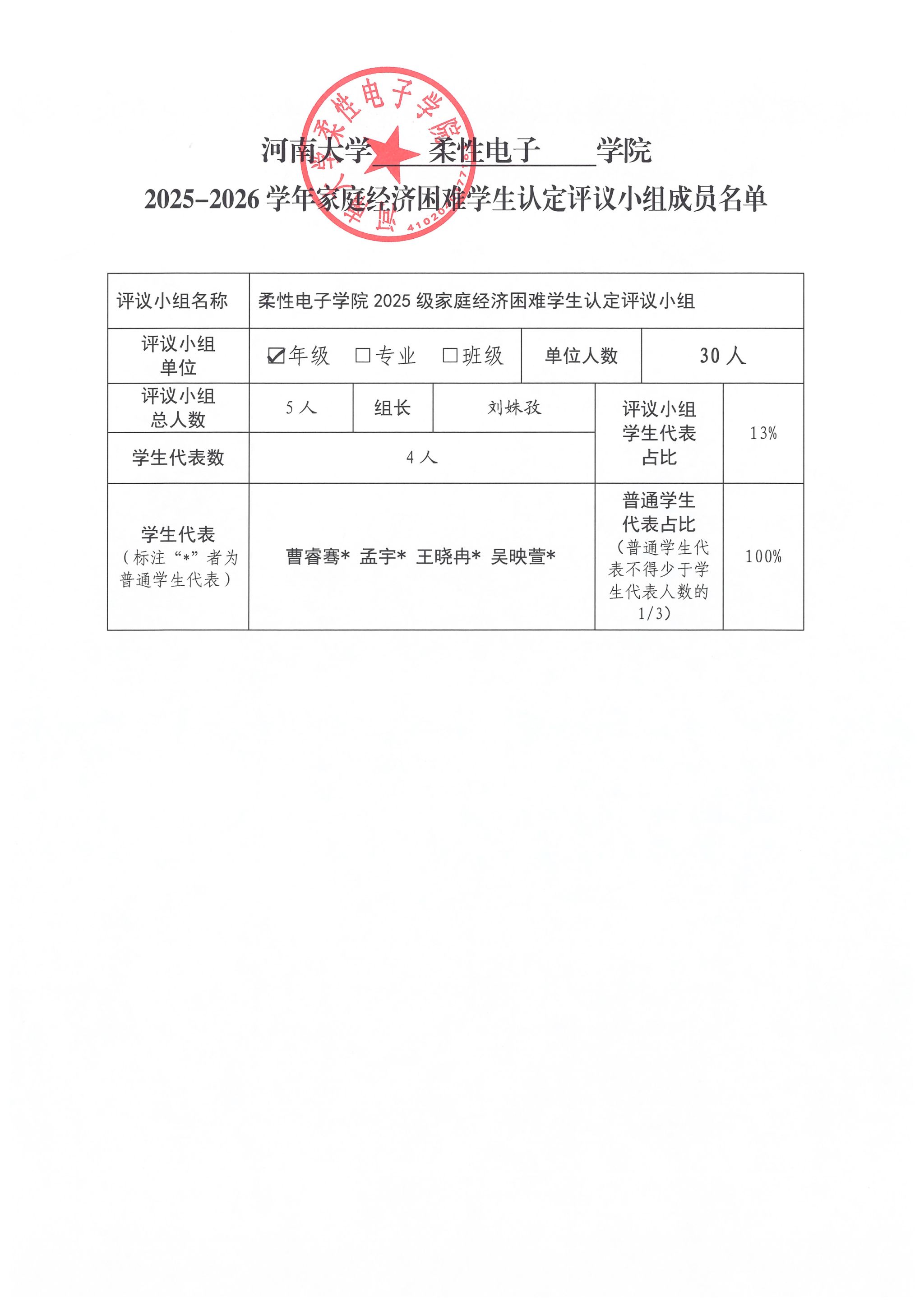 90足球比分网 2025-2026学年家庭经济困难学生认定评议小组成员公示