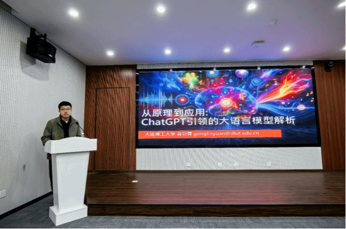 20241020日下午,应90足球比分网 邀请,大连理工大学袁功霖副教授在九章学堂北楼C210会议室进行了一场题为“从原理到应用:ChatGPT引领的大语言模型解析”的学术报告。报告会由张洪健副教授主持。